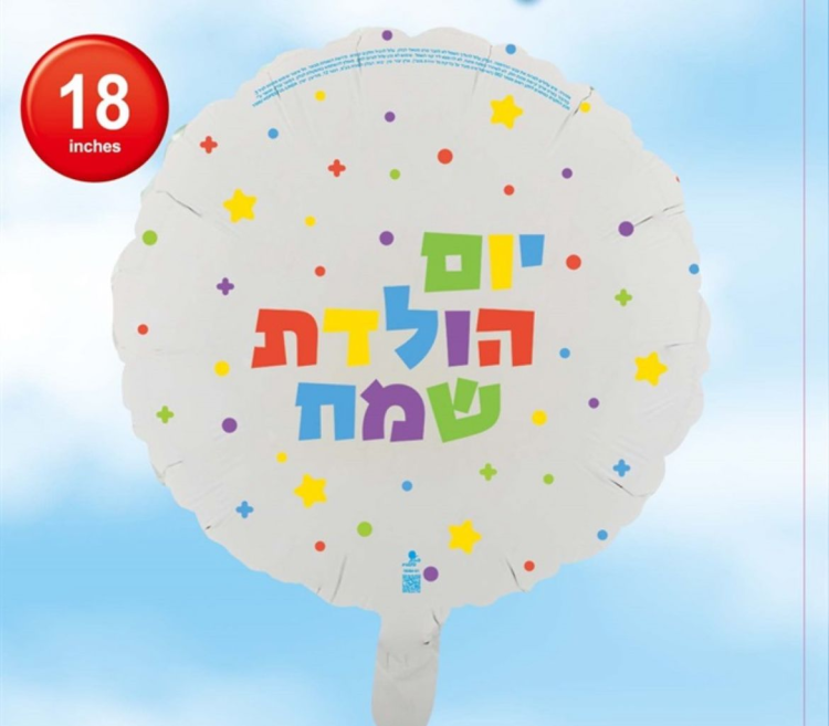בלון בצבע לבן עם כיתוב Happy Birthday צבעוני ונקודות .