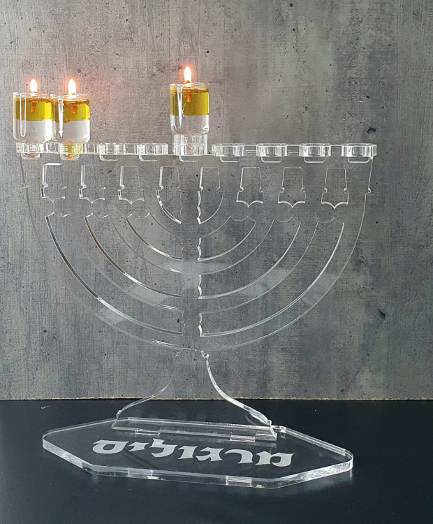 חנוכייה שקופה מאקריל, יפה במיוחד במחיר השקה.