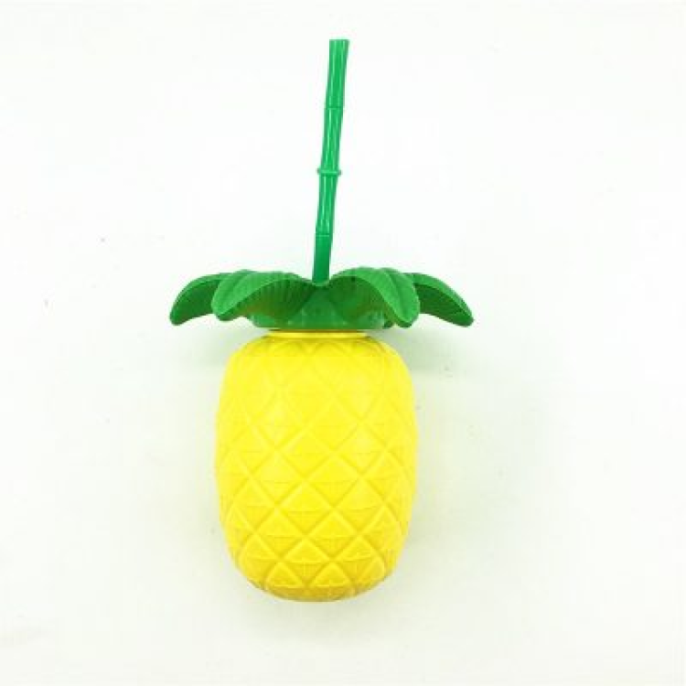 כוס אננס גדולה מגיעה עם קש פלסטיק ירוק.