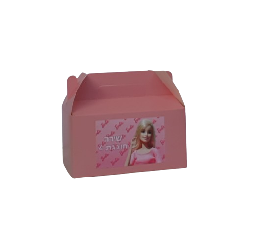 לאנץ בוקס ורוד ממותג עם מדבקה בעיצוב ברבי , מושלם לעיצוב השולחן והכנסת הפתעות.