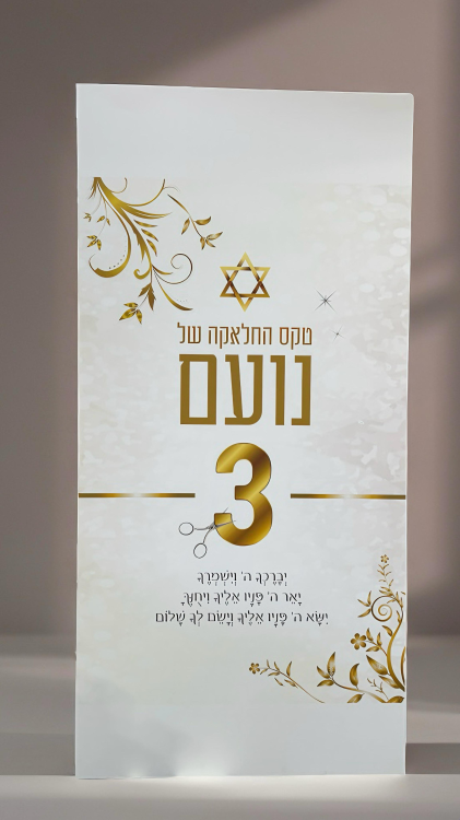 לוח קאפה מעוצב לאירוע עם הדפסה אישית, מתאים לטקס החלאקה. הלוח כולל עיצוב אלגנטי בצבע זהב, שם החוגג, ניתן להכניס תאריך האירוע, ופסוקים מרגשים. עשוי מחומר קאפה עם גימור מוקפד, מעניק אווירה מיוחדת ומכובדת לכל אירוע.