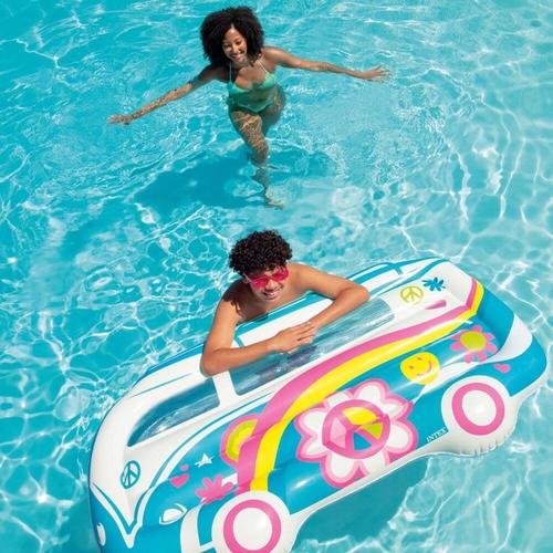 מתנפח לבריכה בצורת ואן היפי צבעוני עם עיטורי פרחים,