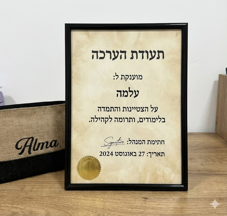 הצגו בגאווה תעודות, דיפלומות ויצירות אישיות עם מסגרת יוקרתית ונקייה בגודל A4 (21×29.7 ס”מ).