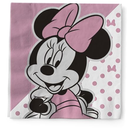 מפיות מתוקות בעיצוב מיני מאוס בצבעי ורוד ולבן. מוסיפות סטייל עדין ושמח לכל שולחן יום הולדת.