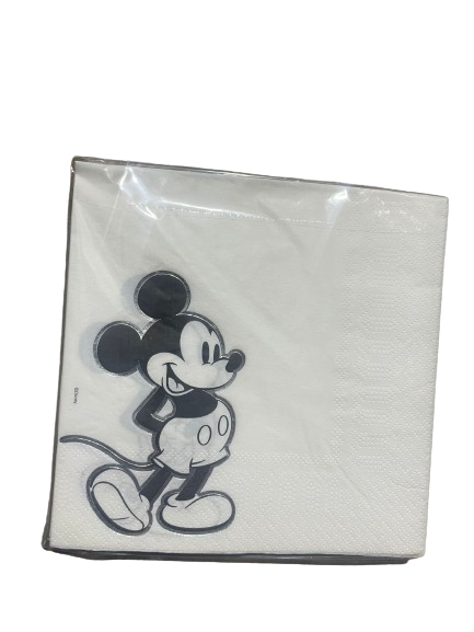 המפיות בצבע לבן עם הדפס איכותי של מיקי מאוס, מוסיפות מראה שמח, קלאסי ומוכר לשולחן האירוח.
