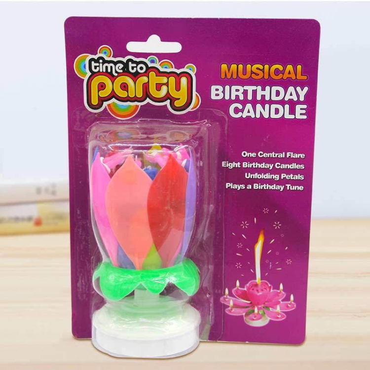 נר מנגן מסתובב שנפתח לפרח ושר happy birthday