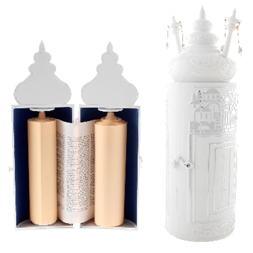 ספר תורה קטן מהודר בלבן – אופציה להוספת שם אישי ✡️
