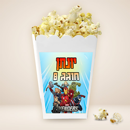 קופסאות פופקרן בצבע לבן עם מדבקה.