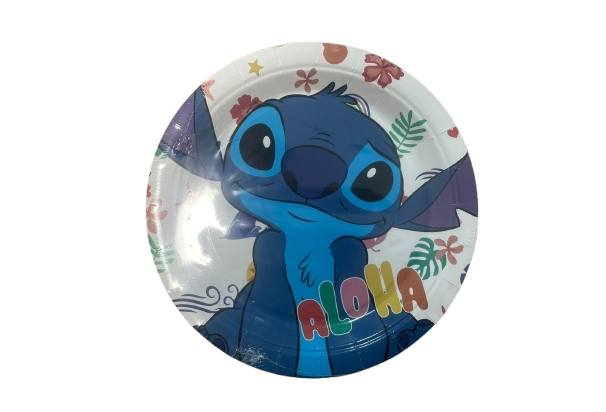 צלחות נייר עגולות בעיצוב מקסים של סטיץ’ ולילו – מוסיפות צבע וכיף לכל שולחן מסיבה.