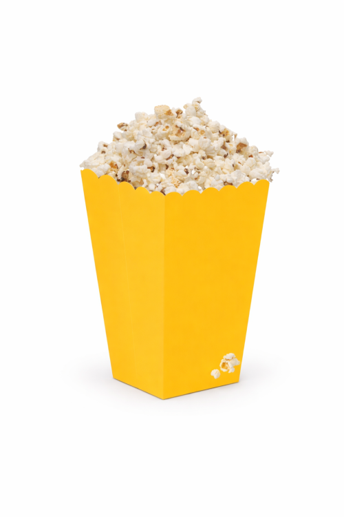 קופסאות לפופקורן וחטיפים בצבע צהוב .