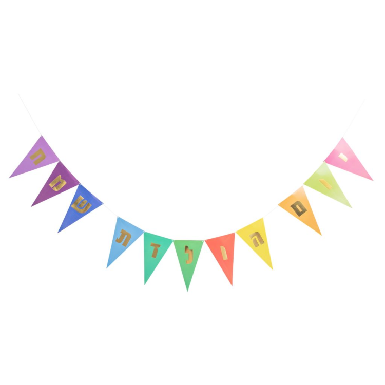 שרשרת דגלים יום הולדת שמח צבעוני עם הכיתוב יום הולדת שמח בהטבעת זהב