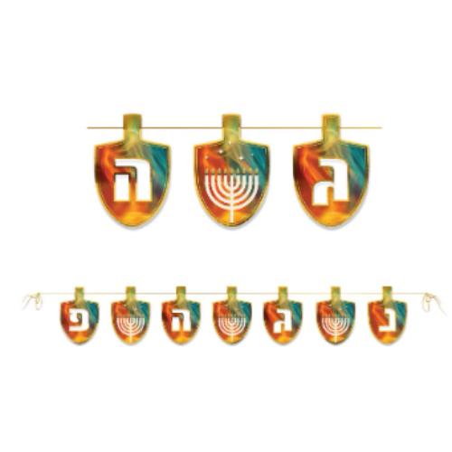שרשרת דגלונים צבעונית לחנוכה בעיצוב סביבונים